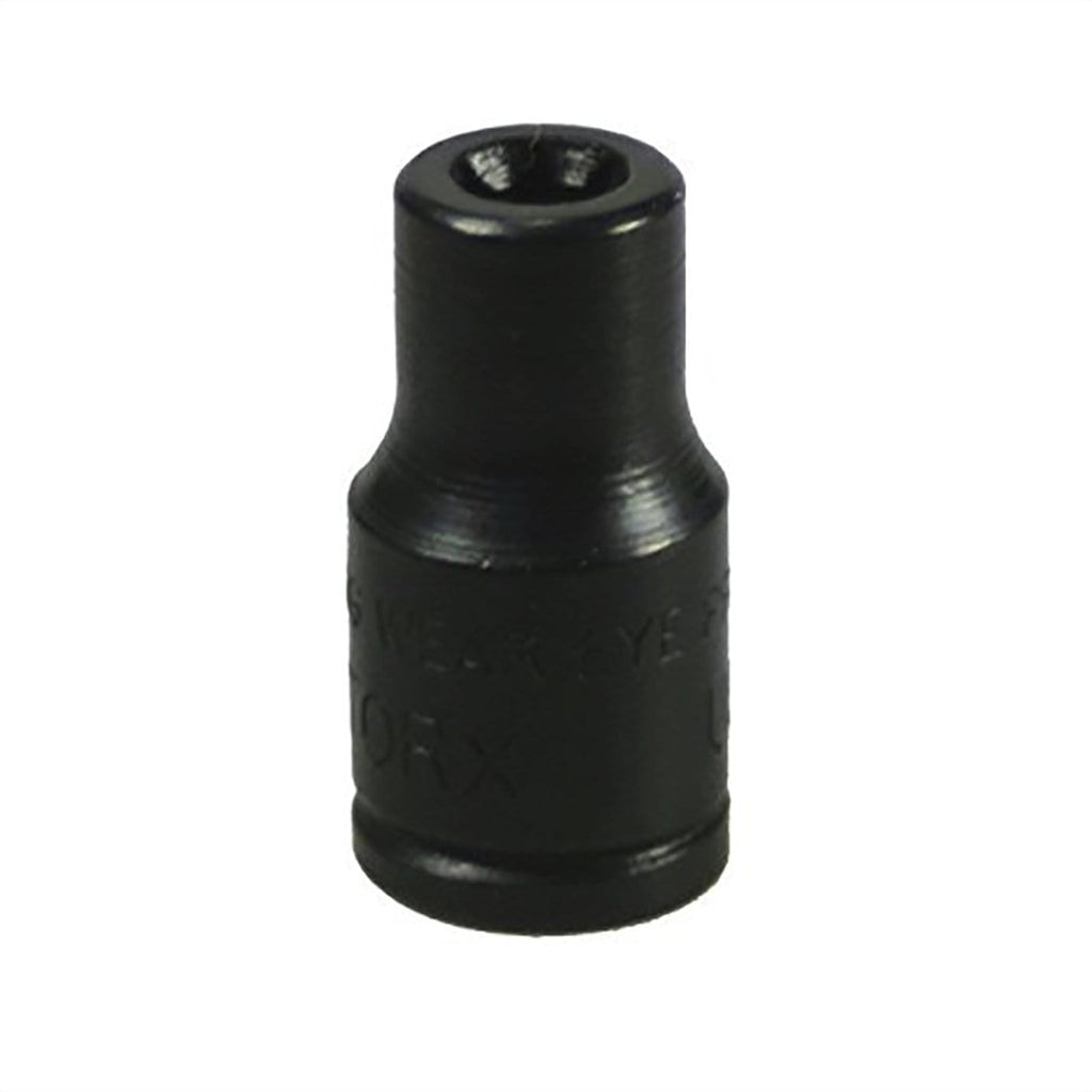 • E8 external bit socket with a 1/4 in. drive. Female torx bit socket. Black oxide finish resists against rust and corrosion.