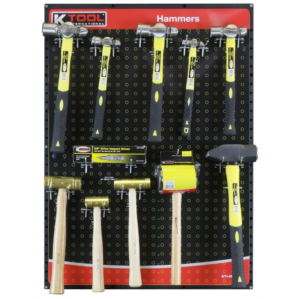 • Includes 8 oz. to 64 oz. Ball Pein, Brass, Cross Pein, and rubber hammers