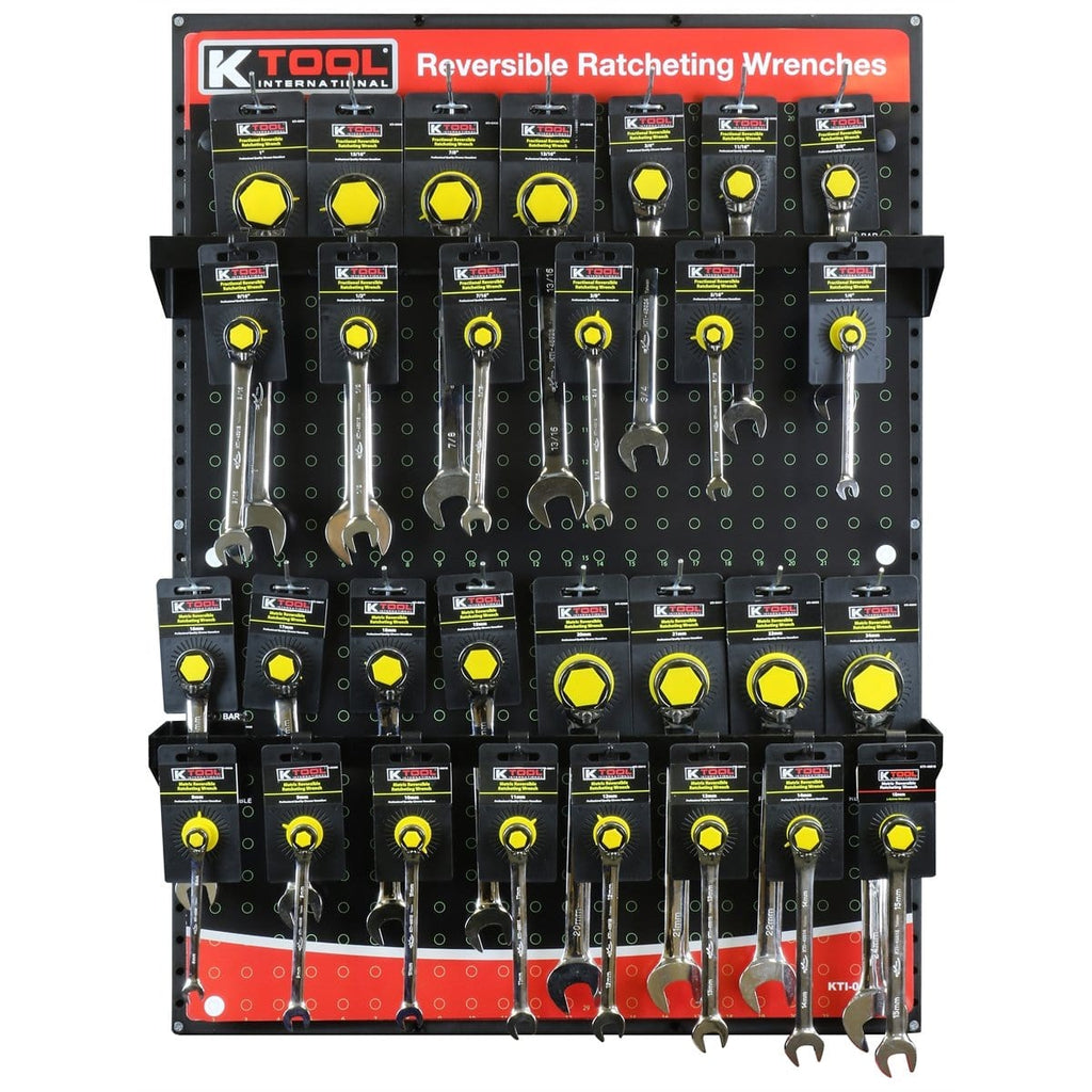 • Display features 29 of the most popular reversible ratcheting wrenches
