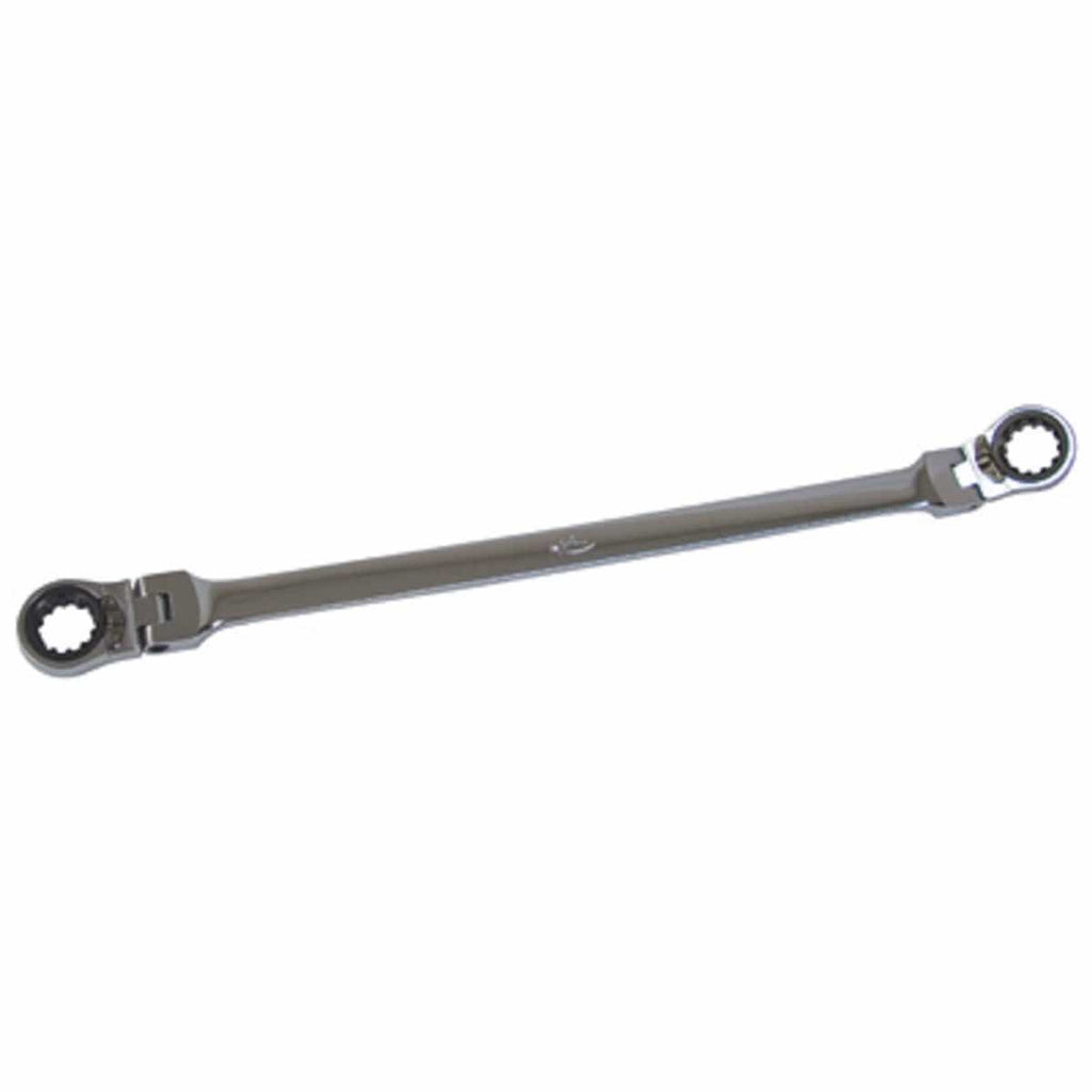 This extra-long, flexible and reversible double box ratcheting wrench is forged of chrome-vanadium steel and heat treated for durability. Wrench features a 72-tooth design with a high polish finish and are nearly 40% longer. Ratcheting box end needs as little as 5 degrees to move fastener. Sleek head design and slim dimensions further ease of working in confined areas.