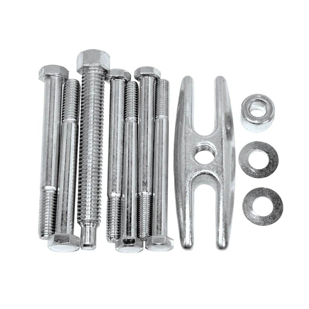 • The kit includes the 1 center screw, 1 Floating swivel, 2 5/16 x 4 bolts, 2 1/4 x 3 bolts, 3 1/4 x 2 bolts, and 3 5/16 x 2 bolts, all bits are machine precision, hardened, and tempered