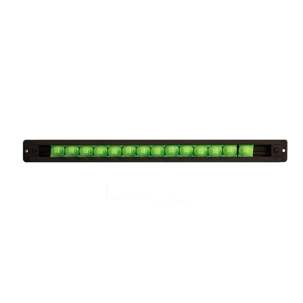 Lock sockets onto rail with a simple twist; and twist to unlock. The underside contains a full length, high powered, no adhesive magnet, inserted into an aluminum base for mounting onto most metal surfaces. 1/4"drive Green Locking Posts are available separately for customized organization. (LAS25LP25G). Matte Black rail holds (13) 1/4" drive sockets & can accommodate different types of sockets. Dimensions: 14"L x 1 3/8"W x 1 1/4"H.