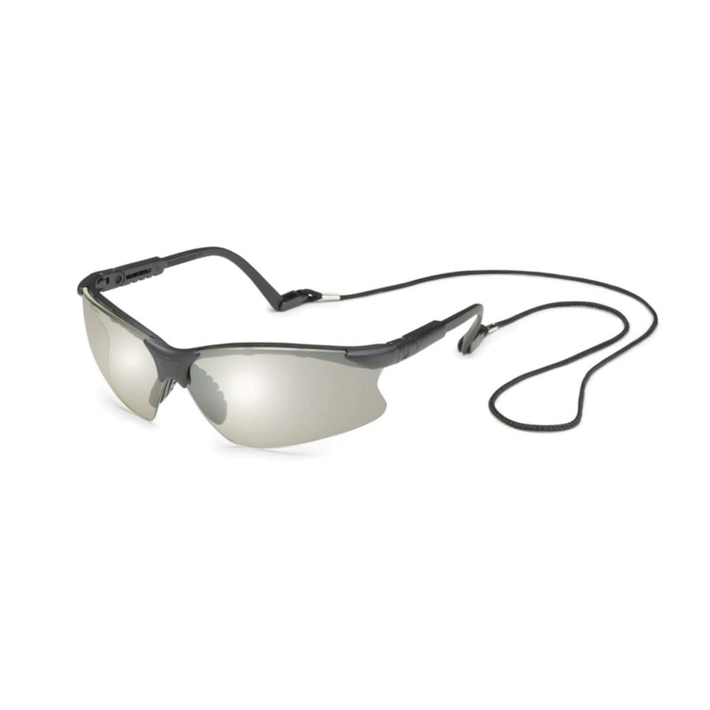 • Safety Glasses, Scorpion, Clear Mirror Lens, Black Frame, Adjustable Length Temples, Retainer