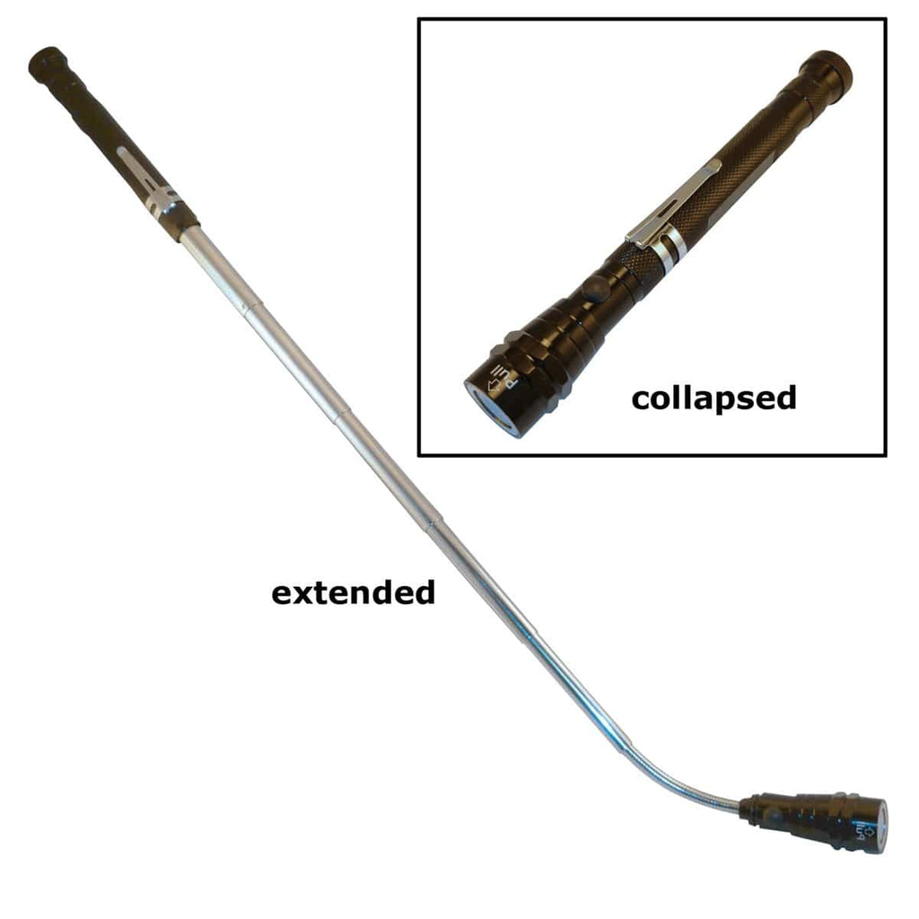 This handy Inspection light extends to 22" and tip is flexible, also doubles as a magnetic pickup tool with Neodymium magnets in base and head.
